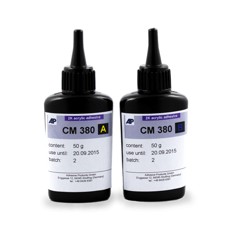 Our anaerobic 2C acrylic adhesives are particularly suitable for bonding colored glass or metals. No static mixing of the components is required. Our brochure shows the standard CM 380 system both as an A/B system and as an A/activator variant. In addition, we offer you a wide range of other adhesive solutions, such as variants with a dual curing mechanism.